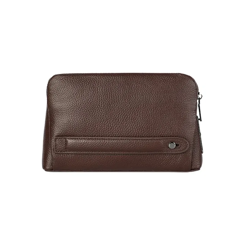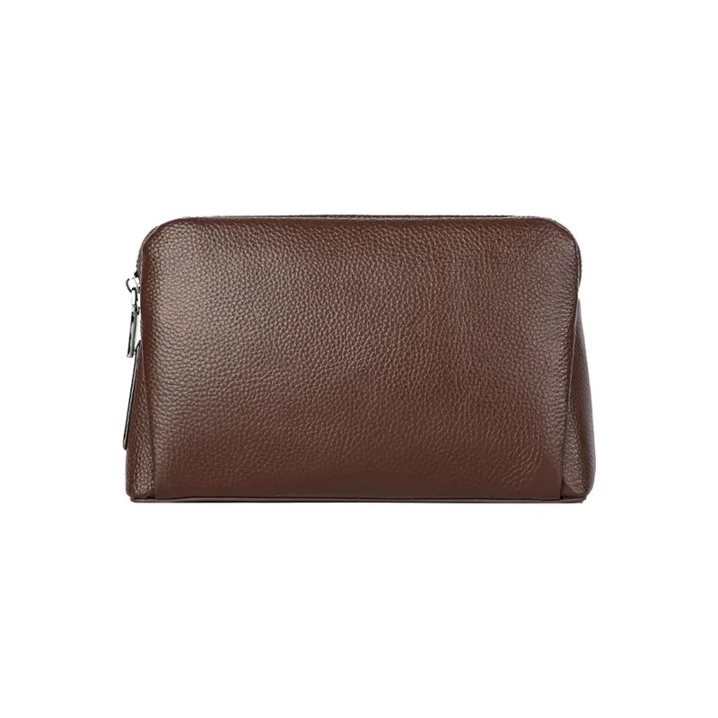 - Pebble-grain coffee brown pouch with a clean, structured silhouette