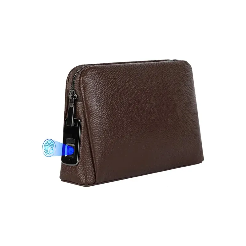 Biometric Fingerprint-Lock Travel Clutch – Coffee Brown