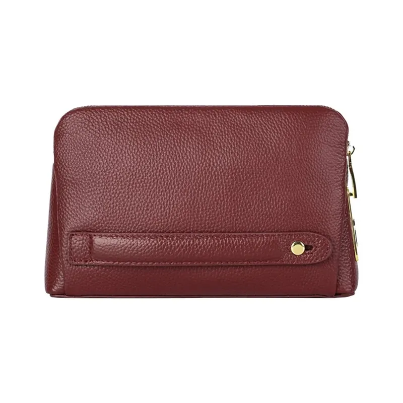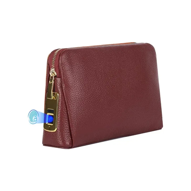 Biometric Fingerprint-Lock Travel Clutch – Wine Red (Gold Hardware)