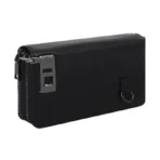 - Slim black wristlet with pebble texture and clean rectangular profile