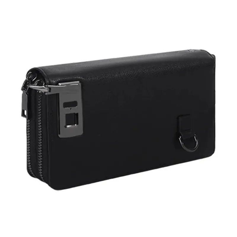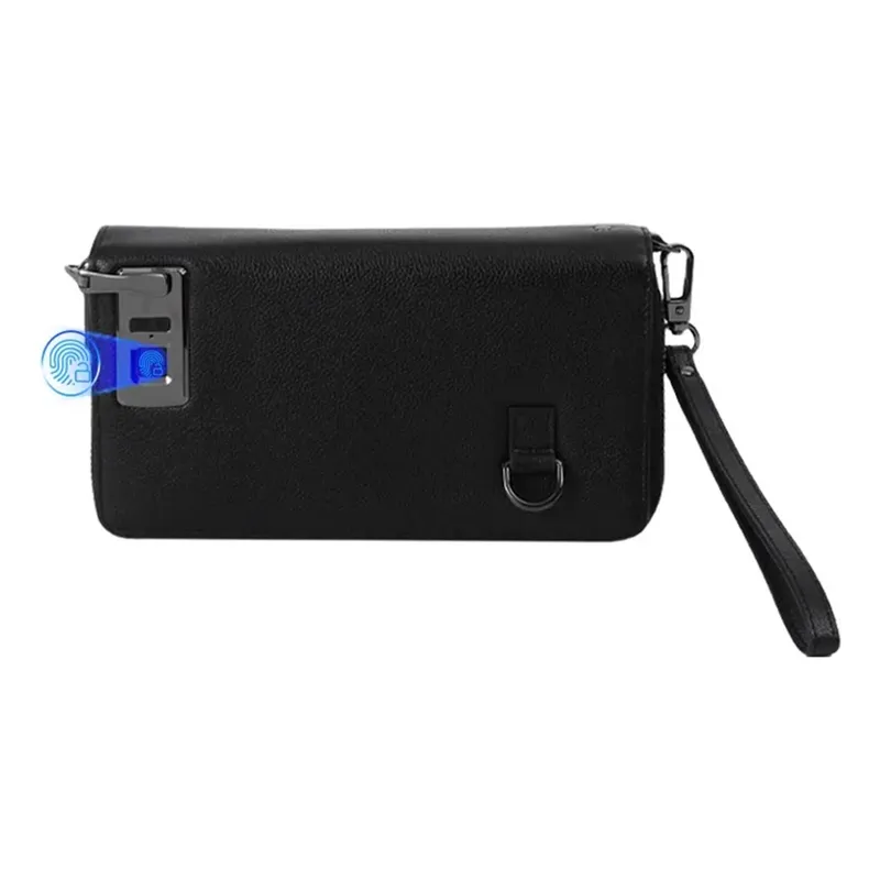 Biometric Fingerprint-Lock Wristlet Clutch – Black (Gunmetal Hardware)