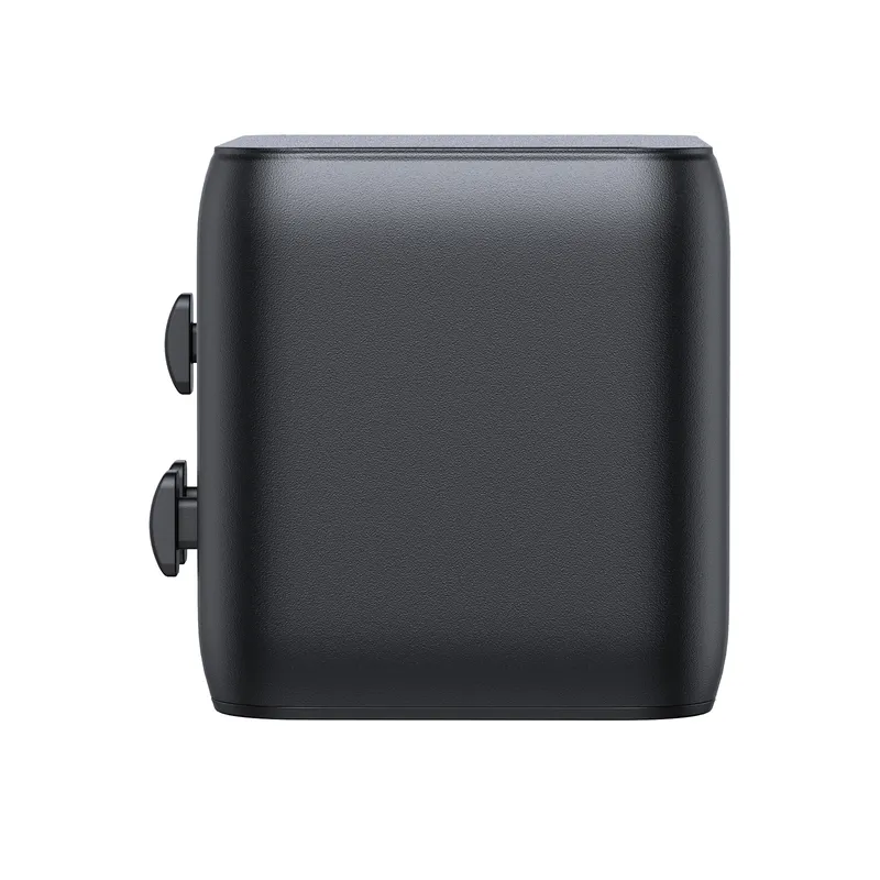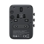 Versatile global travel adapter designed to support multiple devices and plug configurations in one compact unit. With compatibility across more than 200 countries—including US, UK, EU, AU and JP—it offers a configurable plug system to suit your destination. On the charging side, it features one USB‑C port (5.0 V = 3.0 A ≈ 15 W) and up to three USB‑A ports (each 5.0 V = 2.4 A max), while the total USB output is rated at 5.0 V = 3.4 A (~17 W). The unit also supports AC load up to 2,500 W for small appliances when using its AC outlets. Built of fire‑resistant PC material with smart internal regulation and dual‑fuse protection, it includes 8‑point safety features (over‑current, over‑voltage, short‑circuit, over‑temperature, etc.). At approximately 72.5 × 50 × 53.7 mm and weighing around 141 g, it’s lightweight and streamlined for travel use.