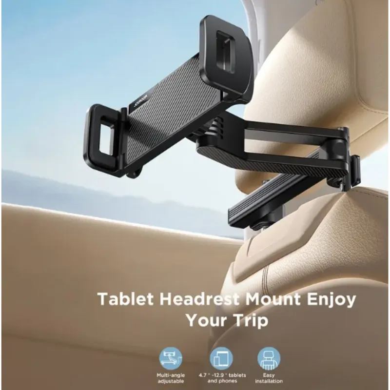 The Joyroom Car Headrest Tablet Holder provides a secure and convenient solution for enjoying media on the go. Designed to attach easily to your car’s headrest, it holds tablets firmly in place, keeping passengers entertained during long drives. The adjustable clamp fits a wide range of tablet sizes, while the 360-degree rotatable head allows for perfect viewing angles for movies, games, or video calls. Made from durable and high-quality materials, this tablet holder ensures stability, safety, and long-lasting use. Compact, practical, and easy to install, the transforms your backseat into a comfortable entertainment zone.