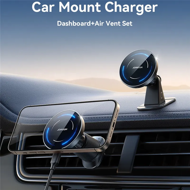 The Joyroom Magnetic Wireless Car Charger Holder 2-in-1 combines a powerful magnetic mounting system with fast wireless charging to deliver a seamless driving experience. Designed to work perfectly with MagSafe-compatible devices, it ensures your phone snaps into place instantly and stays securely mounted even on rough or bumpy roads.