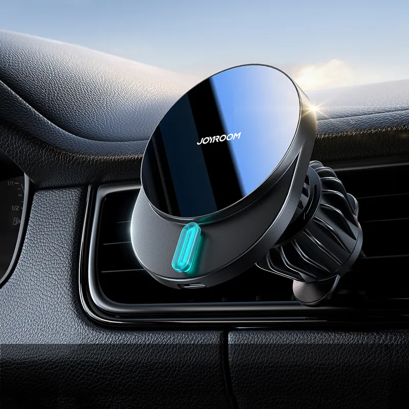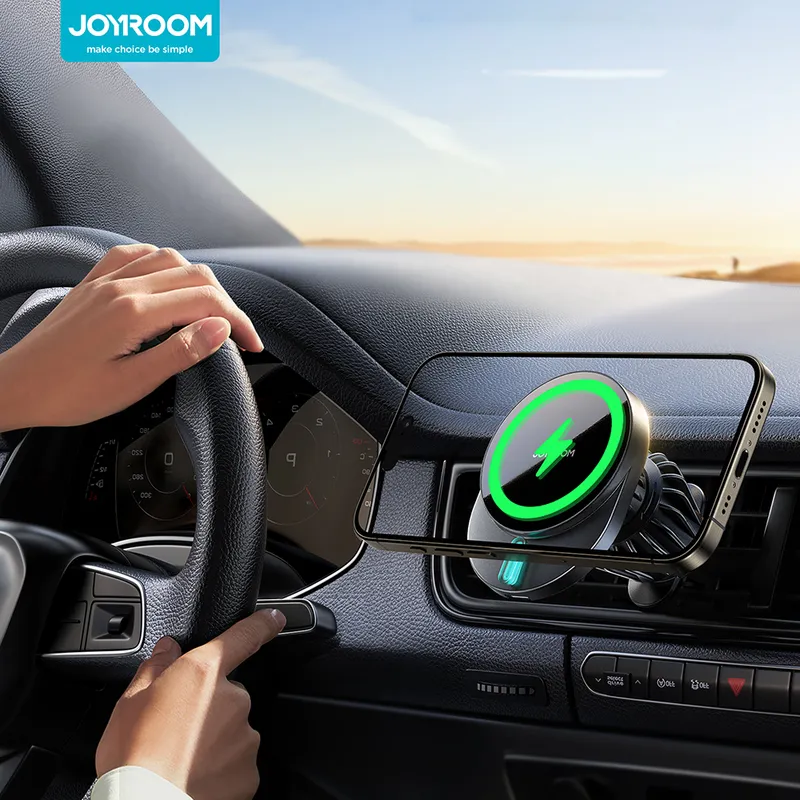 The Joyroom Magnetic Wireless Car Charger Holder combines convenience, safety, and fast charging in one sleek design. With its powerful magnetic hold, it keeps your phone securely in place while you drive, even on bumpy roads. The built-in wireless charger supports fast charging for compatible devices, eliminating the need for messy cables. Designed for easy installation, it can be mounted on your car’s dashboard or air vent without leaving residue. Its 360-degree rotation allows you to adjust your phone to the ideal angle for navigation, calls, or media. Durable, stylish, and practical, this wireless car charger holder is a must-have accessory for modern drivers seeking hands-free convenience and efficient charging.