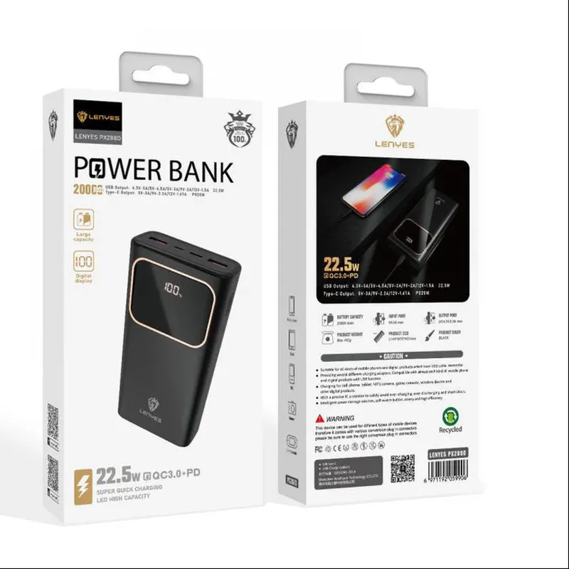 The Lenyes 20000mAh Power Bank is designed to deliver dependable power for daily use, travel, and long hours away from a wall charger. With its large 20000mAh capacity, it provides multiple full charges for smartphones and enough backup power for tablets, earbuds, and other USB-powered devices. It is a practical balance between high capacity and portability, making it easy to carry while still offering strong performance.