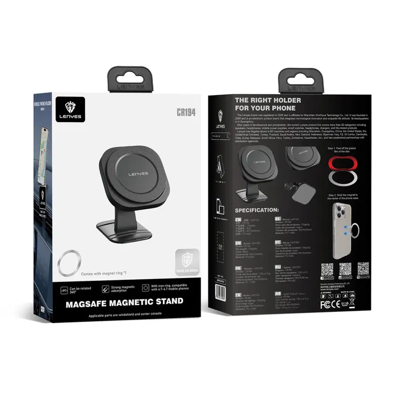 Crafted with premium materials, the CR194 offers a stable, durable, and stylish design that fits seamlessly on your desk, bedside table, or in your car. Its adjustable rotation ensures you can position your device at the perfect angle every time, providing enhanced usability and comfort for work, entertainment, or travel.