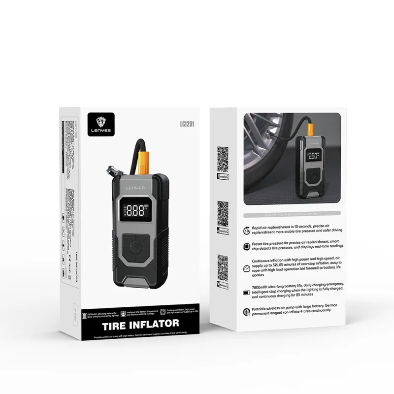 The Lenyes Auto Vehicle Tire Inflation Pump is a versatile and reliable tool designed to make tire maintenance quick, easy, and accurate. Equipped with a multi-mode digital display, it allows you to monitor pressure readings in real time, so you can inflate tires to the correct level with confidence. This compact and portable pump is ideal for cars, motorcycles, bicycles, sports gear, and other inflatable items, making it a practical companion for everyday use and emergency situations.