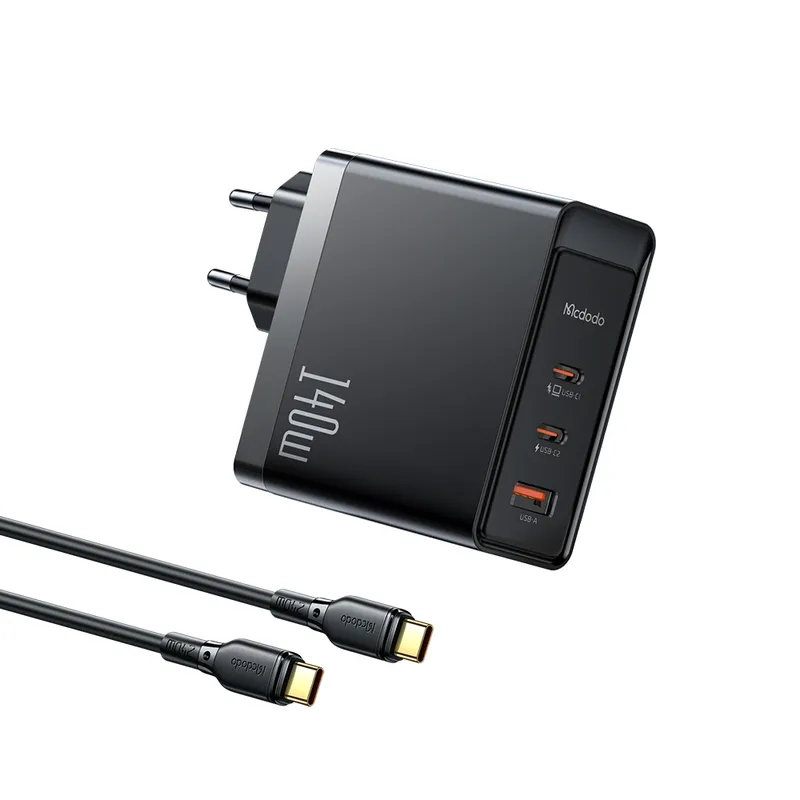 Mcdodo 140W (2 Type-C+1 Type-A) GAN 5 Pro Fast Charger (EU) +240W USB-C to USB-C Cable 2m