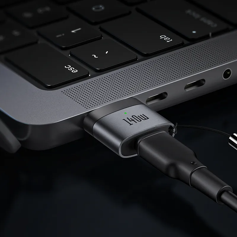 The 140W USB-C to MagSafe 3 Portable Adapter delivers powerful, efficient charging for your compatible MacBook devices. Designed for convenience and portability, this adapter allows you to connect a USB-C power source to a MagSafe 3 charging port, ensuring safe and stable high-speed power delivery up to 140W.