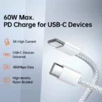 The Mcdodo 60W USB-C to USB-C Data Cable 1m is designed for fast, reliable, and efficient data transfer and charging between USB-C devices. With a 60W power delivery capacity, it supports quick charging for smartphones, tablets, laptops, and other compatible devices, ensuring your devices stay powered up efficiently.