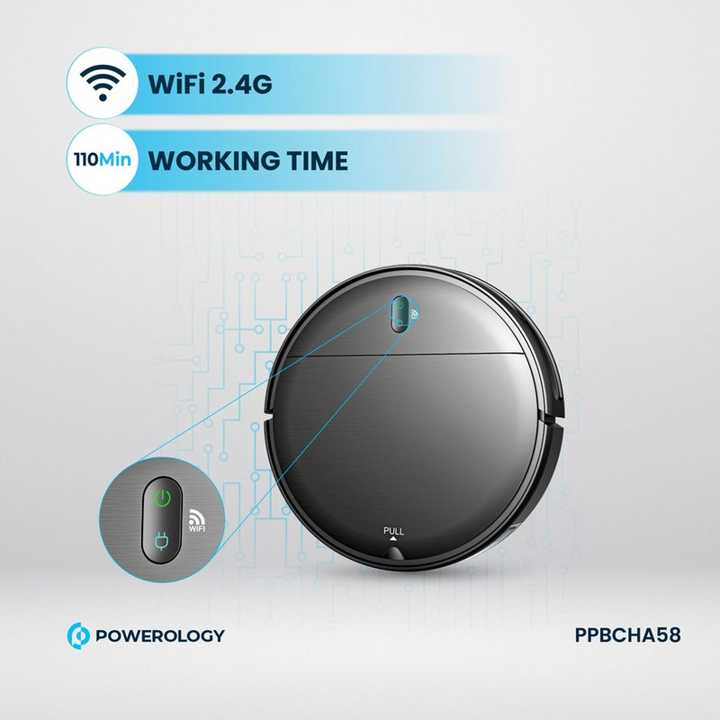 Introducing the Powerology Smart Robovac Vacuum & Mop, the intelligent cleaning solution that automates and powers house cleaning. This highly efficient device features a robust brushless motor to ensure long-lasting performance and reduced maintenance. A 2600mAh, 14.5V Li-ion battery gives as many as 110 minutes of cleaning power per charge for easily cleaning more rooms in one go. In the Robovac, there is a twin system with a 230mL water tank for perfect mopping and a 200mL dustbin with an installed HEPA filter inside to trap minute particles and allergens for a cleaner, healthier environment. Strong suction power with 2000Pa easily lifts dirt and debris off from carpets down to hard floors. Wi-Fi 2.4G connectivity controls and customizes your cleaning from anywhere via a smartphone app. Be it dust, spills, or routine maintenance, this is the go-to tool for keeping your home pristine: the Powerology Smart Robovac Vacuum & Mop.